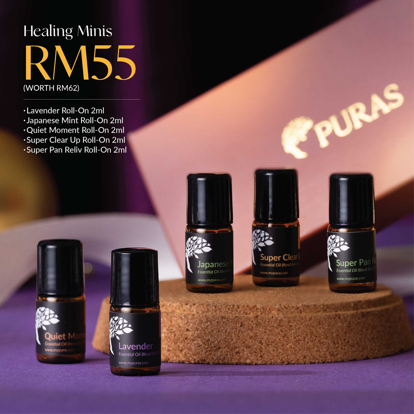 Caprylic/Capric Triglyceride (MCT), Lavandula Angustifolia (Lavender) Oil, Salvia Sclarea (Clary Sage) Oil, Anthemis Nobilis (Chamomile Roman) Flower Oil, Boswellia Carterii (Frankincense) Oil, Origanum Majorana (Marjoram) Leaf Oil, Citrus Bergamia (Bergamot) Peel Oil, Vetiveria Zizanoides (Vetiver) Root Oil.