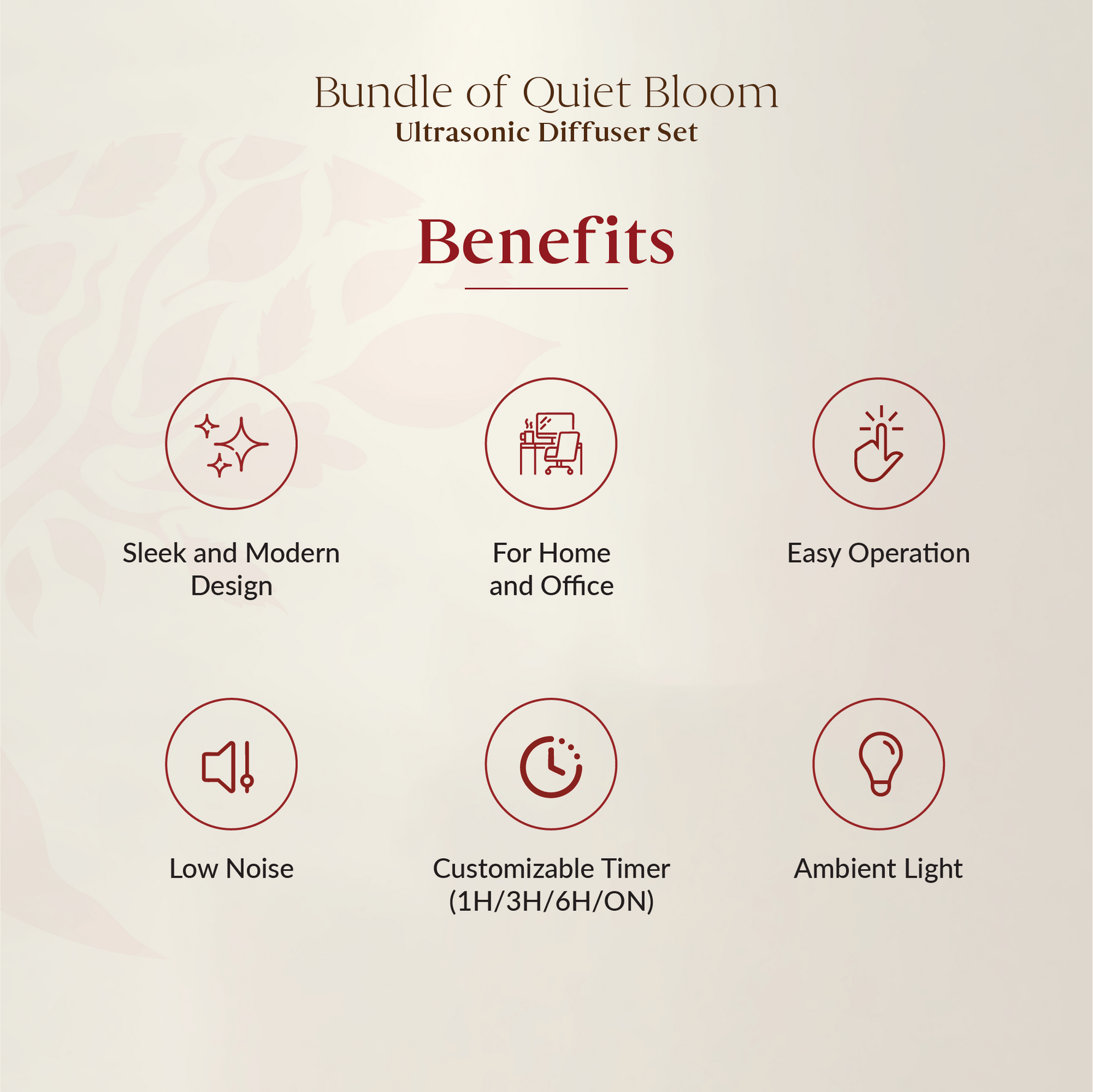 Turn any room into a calming sanctuary. This sleek diffuser blends soothing mist, soft ambient light, and elegant design—your perfect companion for daily relaxation and peace of mind at home: