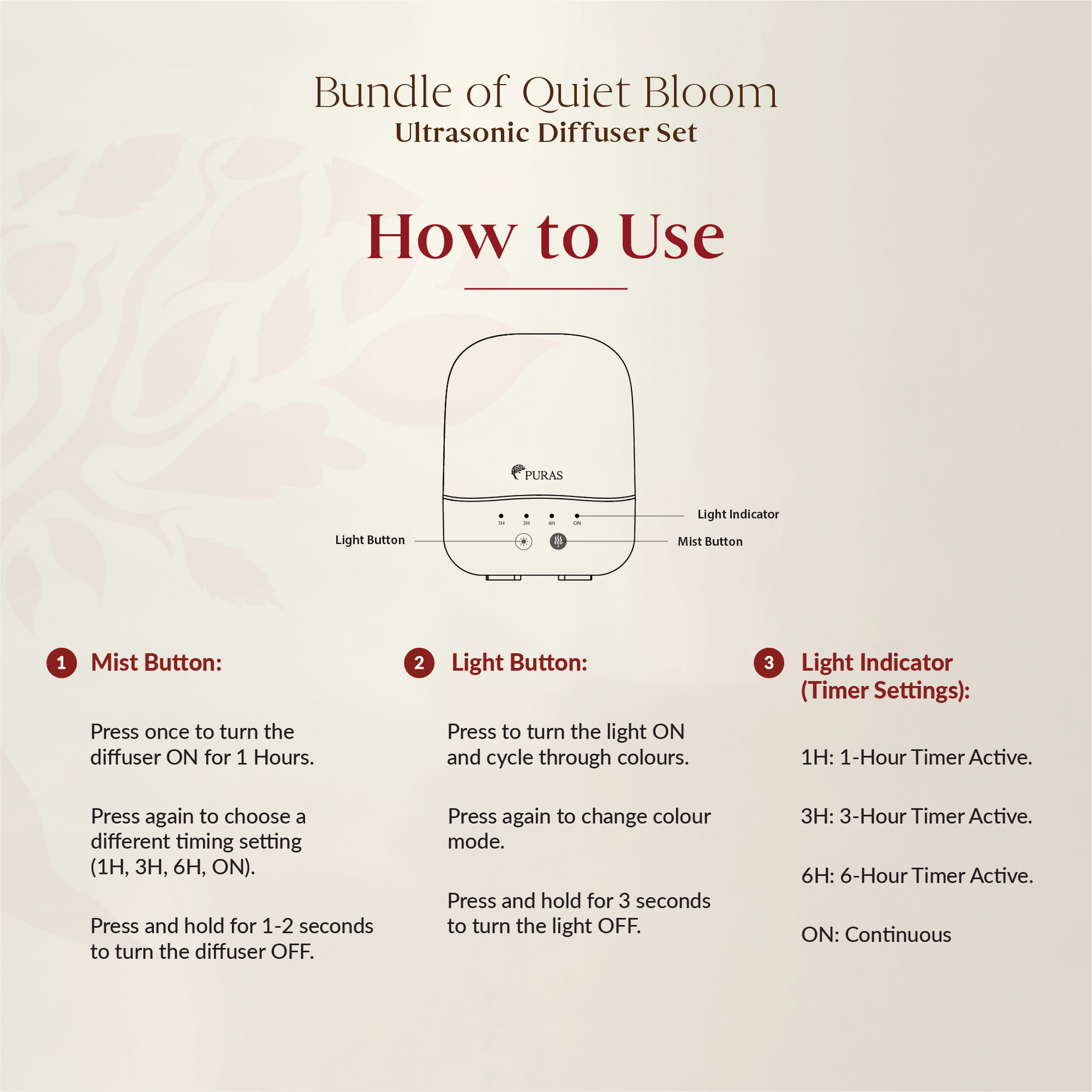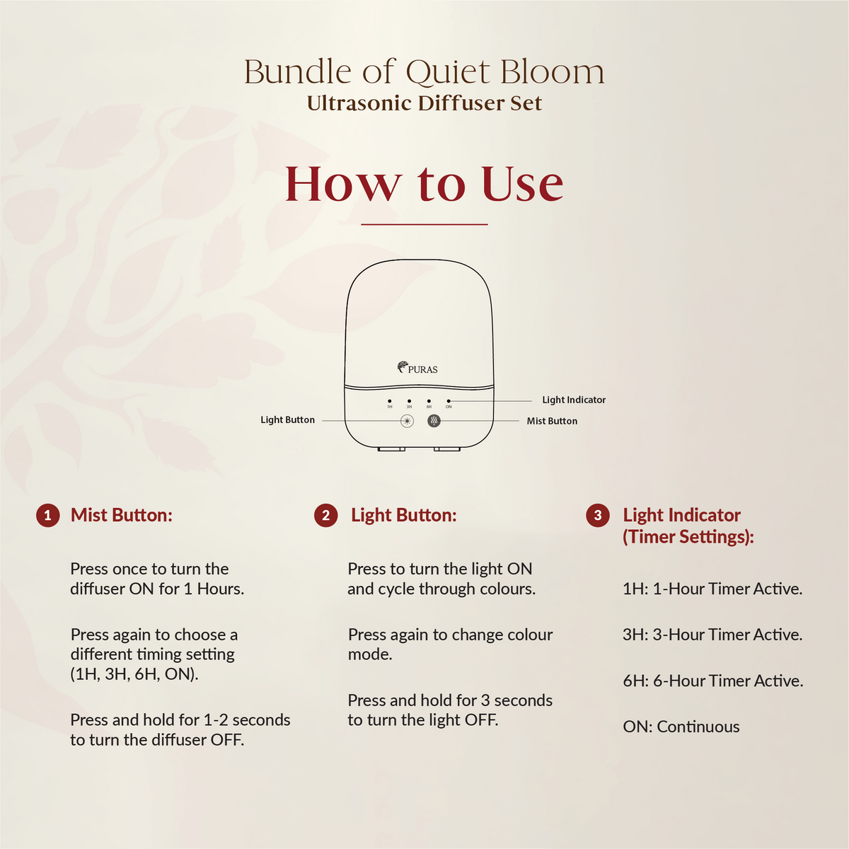 • Customizable timer (1H/3H/6H/ON)