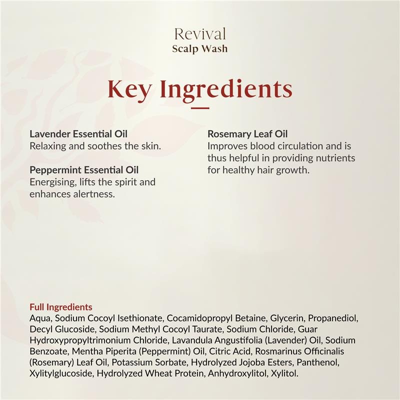 Aqua, Sodium Cocoyl Isethionate, Cocamidopropyl Betaine, Glycerin, Propanediol, Decyl Glucoside, Sodium Methyl Cocoyl Taurate, Sodium Chloride, Guar Hydroxypropyltrimonium Chloride, Lavandula Angustifolia (Lavender) Oil, Sodium Benzoate, Mentha Piperita (Peppermint) Oil, Citric Acid, Rosmarinus Officinalis (Rosemary) Leaf Oil, Potassium Sorbate, Hydrolyzed Jojoba Esters, Panthenol, Xylitylglucoside, Hydrolyzed Wheat Protein, Anhydroxylitol, Xylitol. The ingredients in this product may change from time to time. For the most accurate and up-to-date information, we kindly recommend checking the product label before use.