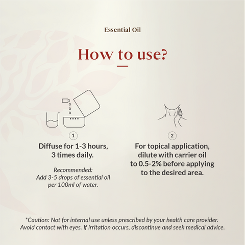 Recommended blends: With bergamot, black pepper, chamomile roman, cypress, geranium, grapefruit, lavender, lemon, patchouli, rose absolute, sandalwood