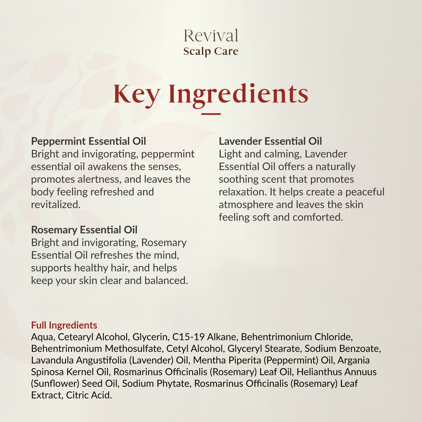Aqua, Cetearyl Alcohol, Glycerin, C15-19 Alkane, Behentrimonium Chloride, Behentrimonium Methosulfate, Cetyl Alcohol, Glyceryl Stearate, Sodium Benzoate, Lavandula Angustifolia (Lavender) Oil, Mentha Piperita (Peppermint) Oil, Argania Spinosa Kernel Oil, Rosmarinus Officinalis (Rosemary) Leaf Oil, Helianthus Annuus (Sunflower) Seed Oil, Sodium Phytate, Rosmarinus Officinalis (Rosemary) Leaf Extract, Citric Acid.
