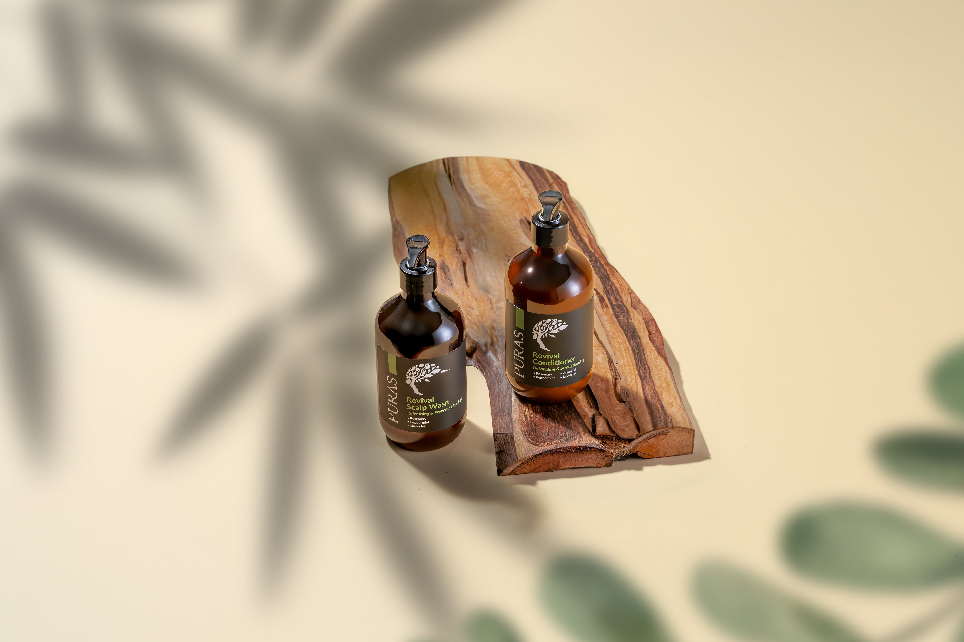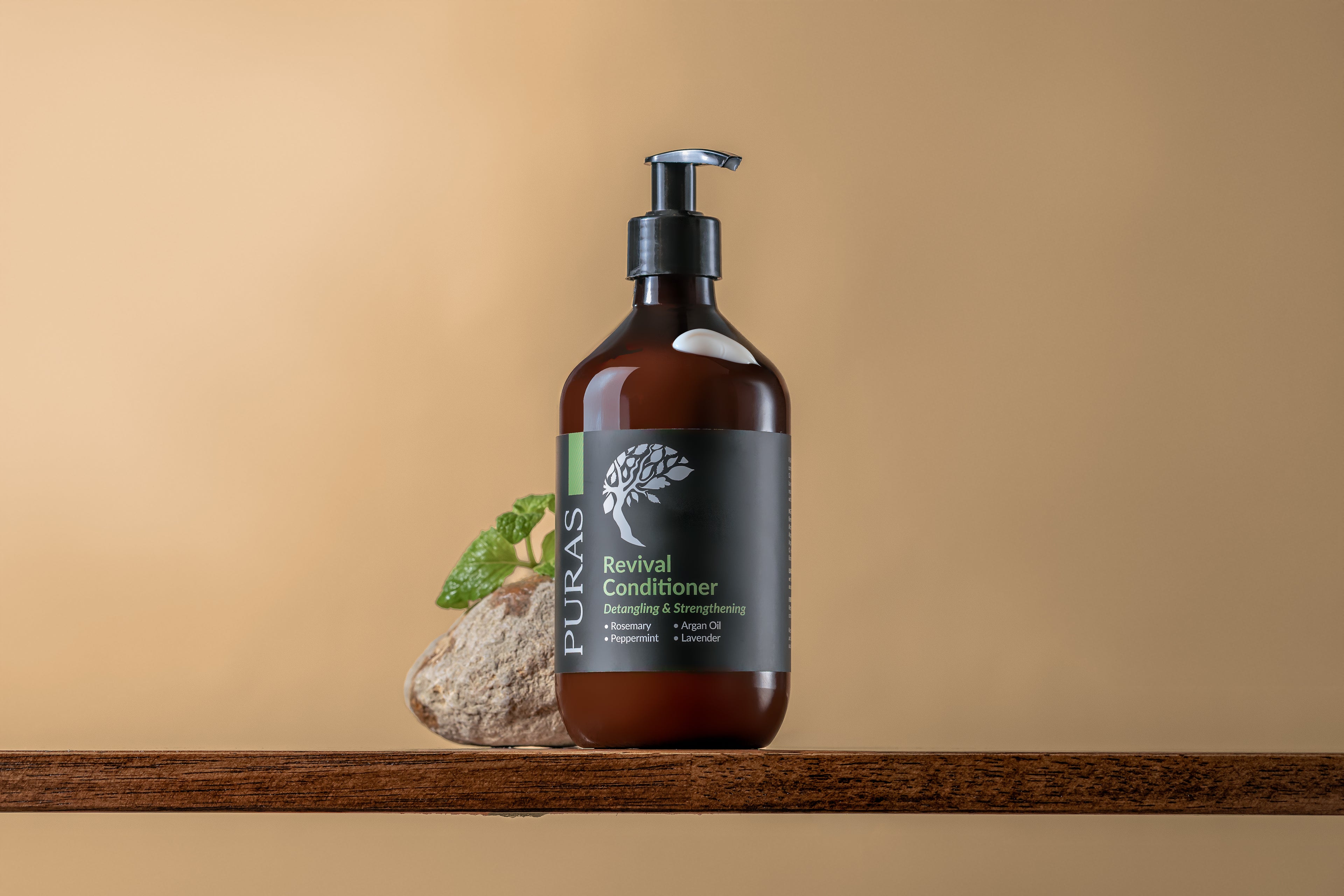 Complete your scalp and hair care ritual with the Puras Revival Conditioner, a nourishing blend crafted to restore softness, shine, and vitality from root to tip.